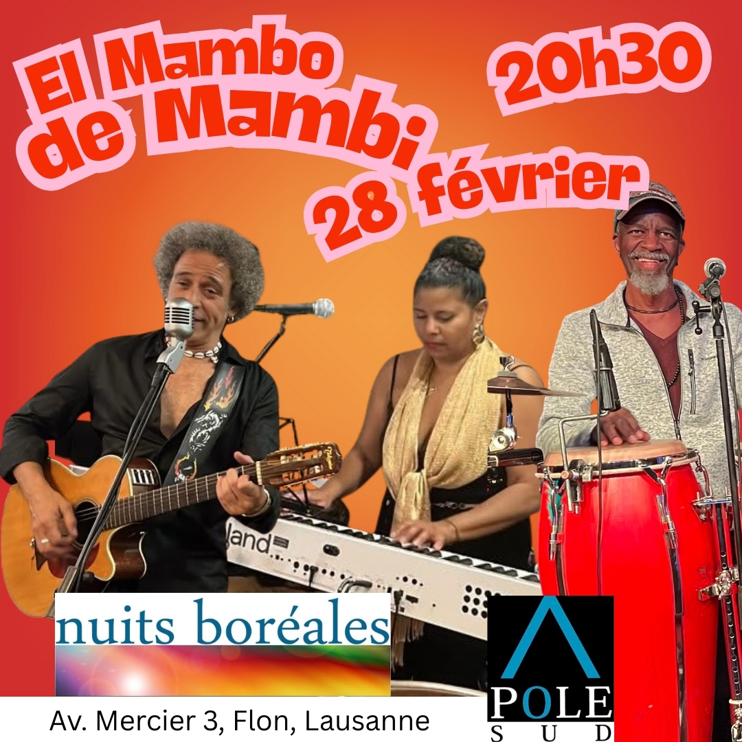 Sa 28 février à 20h30 – Pôle Sud Avenue J.-J. Mercier 3, (Flon) 1003 Lausanne Un brillant trio de musiciens cubains de haut niveau, avec une énergie d'enfer, nous apportent la musique cubaine du passé et du présent pleine de joie de vivre pour un moment chaleureux et...