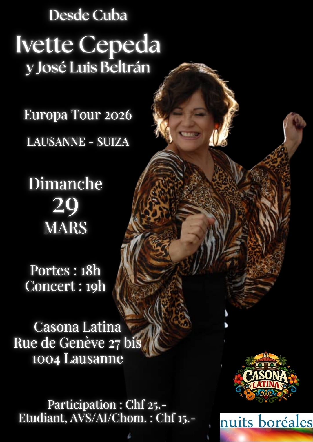 Di 29 mars à 18h – Casona latina Rue de Genève 57 bis, 1004 Lausanne Sa voix magnifique, ses interprétations puissantes et sa manière unique d'exprimer ses émotions expliquent pourquoi cette chanteuse hors du commun a dépassé les frontières cubaines. « J'ai toujours...